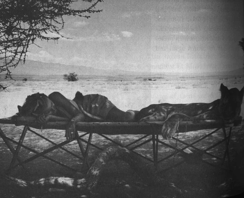 Elsa on a camp bed |
